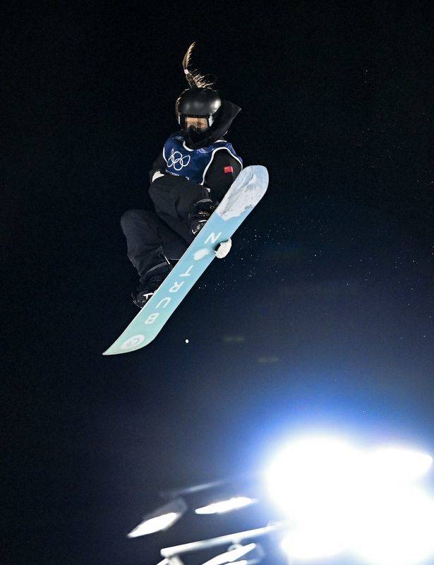 2月8日,中国选手张小楠在冬奥会单板滑雪项目女子大跳台初赛比赛中。图据新华社