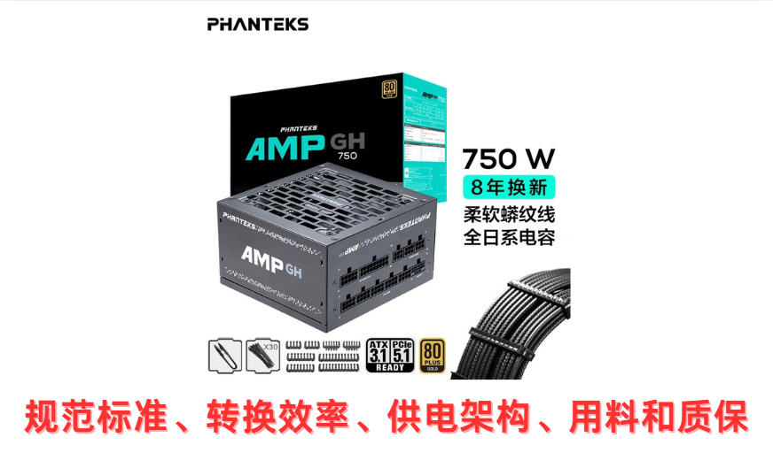 针对2K光追游戏+中重度坐褥力的需求,追风者AMP GH 750W是一款定位中高端的金牌全模组电源,主打ATX 3.1/PCIe 5.1表率、原生12VHPWR接口与静音启停联想,相沿8年质保,现在售价600+。