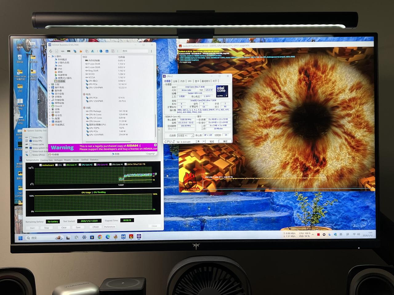 双烤显卡和CPU,负载平直拉满,这时能看到电扇转了,但由于是FDB电扇,静音成果额外给力,凑近了听能力听到电扇声息,平淡用电脑来自水冷电扇的杂音掩盖了其他声息。此外,在双烤显卡和CPU时代,电脑运行结识,没出现黑屏关机的情况,电源温度上手去摸仅比体温略高。